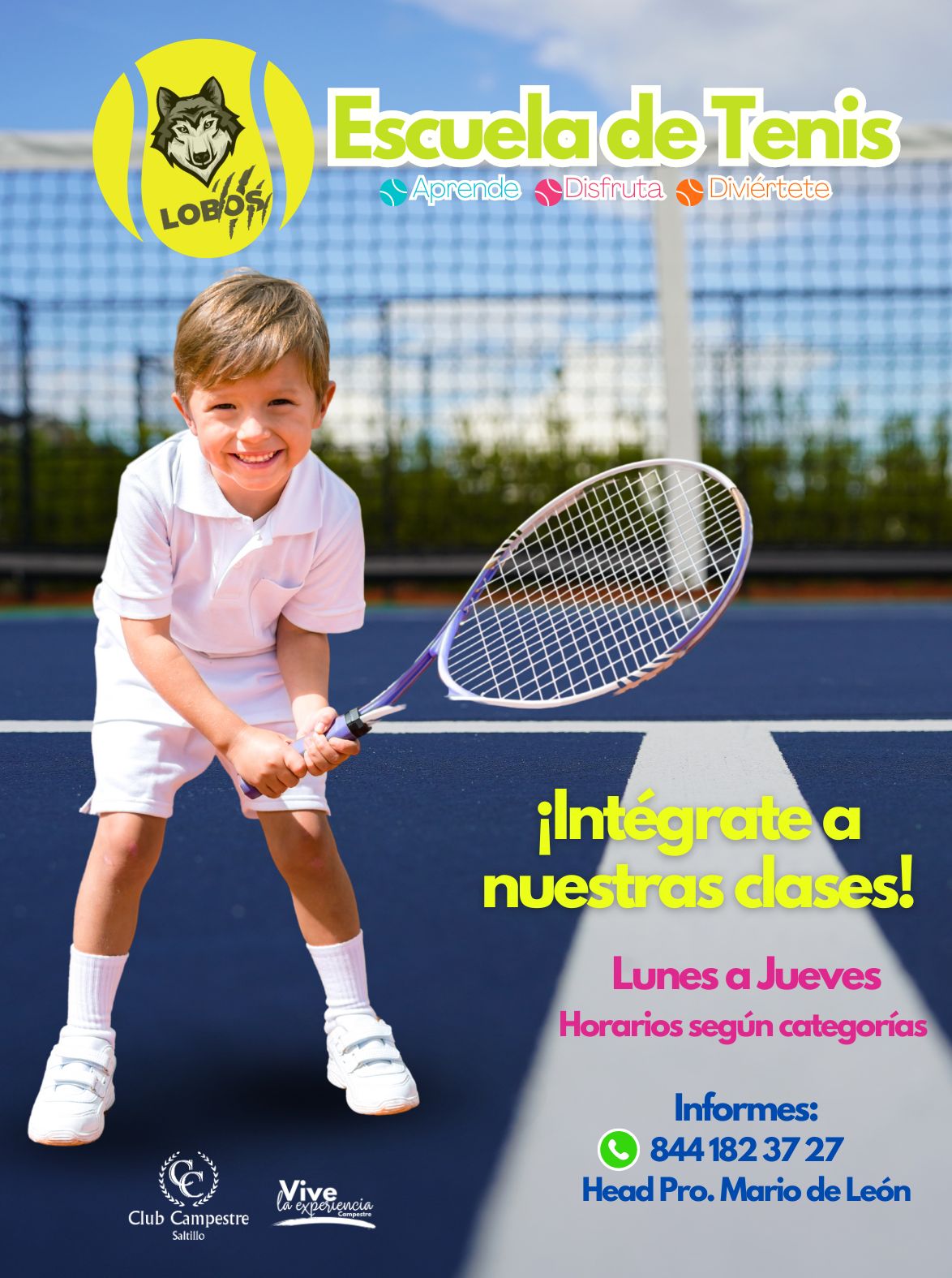 Una de las actividades más importantes de esta área es la Escuela de Tenis